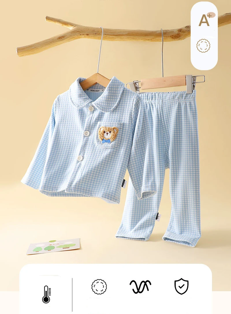 Long Sleeve Pajamas Set Sleepwear for Kids Classic Plaid Boy Girl Sanding Breathable Top and Bottom Pijamas Children's Clothes